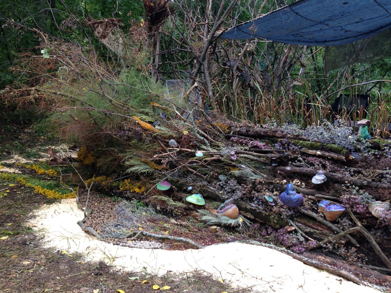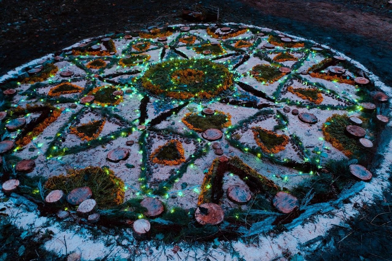 Использование абсолютно любых материалов. Мы можем собрать гигантский арт-объект из веток или картона, в экостиле. Потом залить эти ветки цементом или посадить живые цветы. А можем сделать ростовые цветы из пеноплекса и поставить их в саду среди живых цветов высаженных сакральными узорами. Эклектика — одна из наших фишек!Используя в основном общедоступные материалы и стандартные расходники, мы упрощаем реализацию и удешевляем процесс. Мы можем подобрать Вам материалы на любой бюджет!